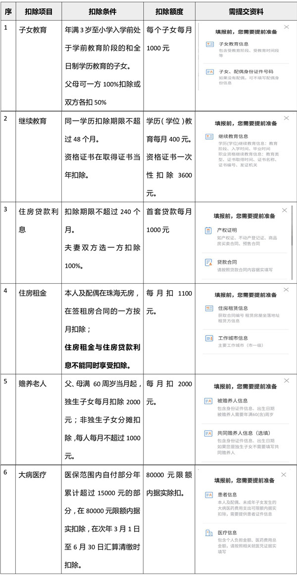 年 1 月 1 日起,子女教育、繼續(xù)教育、大病醫(yī)療、住房貸款利息或者住房租金、贍養(yǎng)老人等六項專項附加扣除政策正式實施。根據(jù)國家政策與地方辦事指南,現(xiàn)對個人所得稅專項附加扣除申報事宜通知如下: