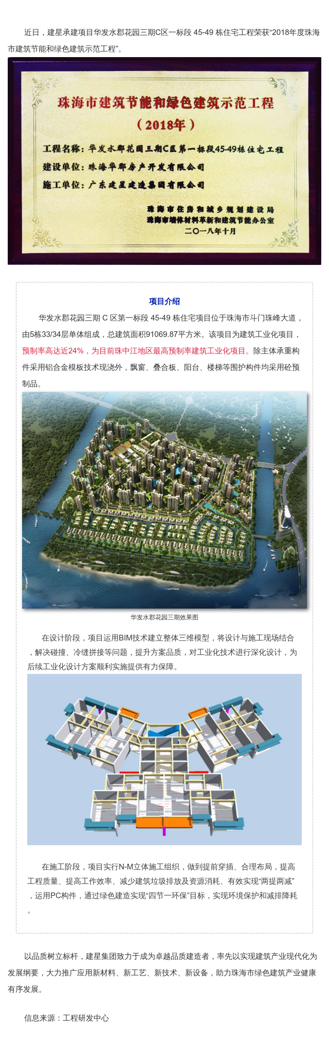 建星承建項目華發(fā)水郡花園三期C區(qū)一標段榮獲珠海市建筑節(jié)能和綠色建筑示范工程