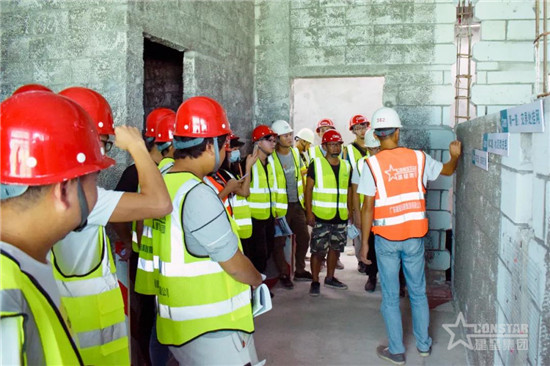 隨后,現(xiàn)場講解員帶領學員現(xiàn)場觀摩,著重介紹了項目施工過程的整體管理模式、特色亮點環(huán)節(jié)和各個施工環(huán)節(jié)的細節(jié)處理方式。