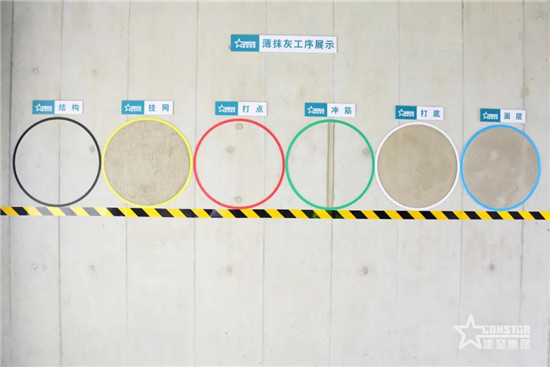 采用紅外激光對(duì)灰餅、筋條施工,保證滿足室內(nèi)的開間進(jìn)深、面層垂直平整在4個(gè)毫以內(nèi)。薄層抹灰工效非??臁⒐て诙?,損耗少,空鼓、開裂控制效果好,且杜絕了泥水的濕作業(yè),為后續(xù)工藝的穿插提供了必要條件。