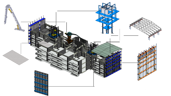 一種全新施工體系,由核心筒自升爬模組成的大模板體系、成品鋼筋網(wǎng)片機(jī)械安裝體系、自動(dòng)伸縮遮陽(yáng)雨棚系統(tǒng)共同組成的智能建造體系。該體系應(yīng)用于施工現(xiàn)場(chǎng),安裝于樓層作業(yè)面。優(yōu)勢(shì)是提高勞動(dòng)效率、降低成本、加快施工周期,提高施工質(zhì)量,同時(shí)施工安全性得到保障。通過各裝置之間聯(lián)動(dòng)工作,使得工地?cái)?shù)字化、在線化、智能化,項(xiàng)目實(shí)施與企業(yè)管理達(dá)到良好的組合效果。