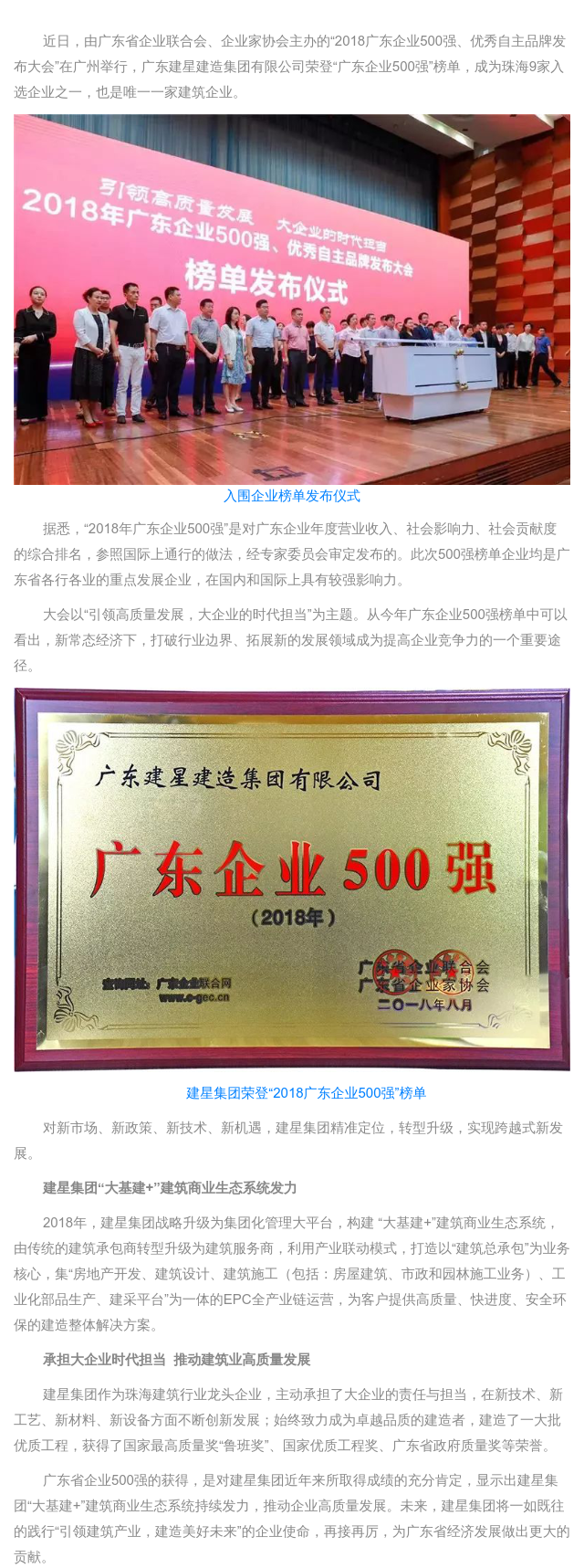 榮譽(yù)|建星集團(tuán)上榜“2018廣東企業(yè)500強(qiáng)”