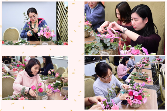 公司特別邀請了專業(yè)花藝師,現(xiàn)場講解挑花、養(yǎng)花小妙招,手把手指導插花搭配技巧。