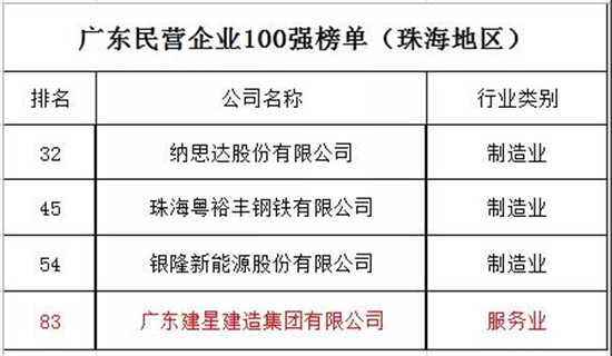 8月29日,2019廣東企業(yè)500強(qiáng)發(fā)布大會在廣州白云國際會議中心舉行。大會發(fā)布了廣東企業(yè)500強(qiáng),廣東省民營企業(yè)100強(qiáng)等榜單。廣東建星建造集團(tuán)有限公司榮登榜單,成為珠海12家上榜企業(yè)之一,也是唯一一家建筑企業(yè),連續(xù)兩年躋身廣東企業(yè)500強(qiáng)、民營企業(yè)100強(qiáng)。
