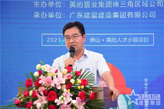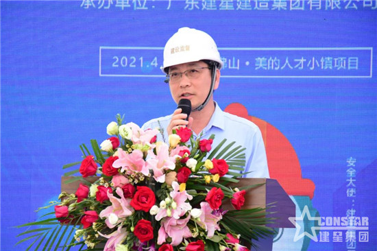 佛山市順德區(qū)住房城鄉(xiāng)建設(shè)和水利局副局長肖志勇、質(zhì)安監(jiān)督三科科長周志雄及北滘鎮(zhèn)城建辦相關(guān)負責人,美的置業(yè)集團珠三角區(qū)域順德公司開發(fā)總監(jiān)陳賢庭、云悅江山項目總陳晉標,建星集團副總裁黃鵬、安環(huán)管理中心總經(jīng)理郭定春、項目管理中心總經(jīng)理曾敏、廣佛區(qū)域公司總經(jīng)理劉小暉以及各項目經(jīng)理、生產(chǎn)經(jīng)理、安全主管及工人代表近300人出席啟動會。