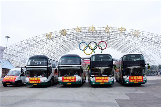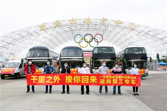 2月26日上午9時,歷經(jīng)10小時,建星集團首批“復(fù)工專車”將近百名建筑工人順利返珠,送抵各項目部。