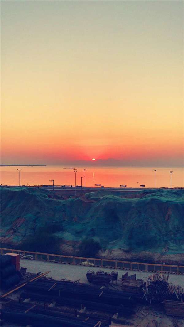 某次值班,天氣依然很熱,干完活已近黎明。身后高樓大廈,腳下鋼筋水泥,抬眼望去一輪火紅的太陽從海平面冉冉升起,真的好美。如果是有藝術(shù)細(xì)胞的人,可能會(huì)寫首詩,我完全沒有。只是感覺很幸福,并用手機(jī)記錄下了這份美好。